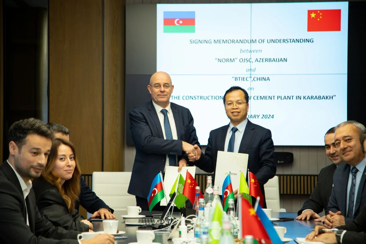 2024年1月29日,北京凱盛黨總支副書記、總經(jīng)理謝吉優(yōu)帶隊(duì)拜訪阿塞拜疆諾姆水泥公司,諾姆水泥公司首席執(zhí)行官Henning Sasse先生及公司高管團(tuán)隊(duì)熱情接待了北京凱盛訪問團(tuán)隊(duì)。雙方就諾姆公司卡拉巴赫新建水泥廠項(xiàng)目合作事項(xiàng)進(jìn)行了深入溝通,并在會(huì)上簽署了卡拉巴赫項(xiàng)目合作備忘錄,諾姆水泥的母公司工業(yè)產(chǎn)業(yè)負(fù)責(zé)人Asaliyev先生參會(huì)并見簽了合作簽約儀式。