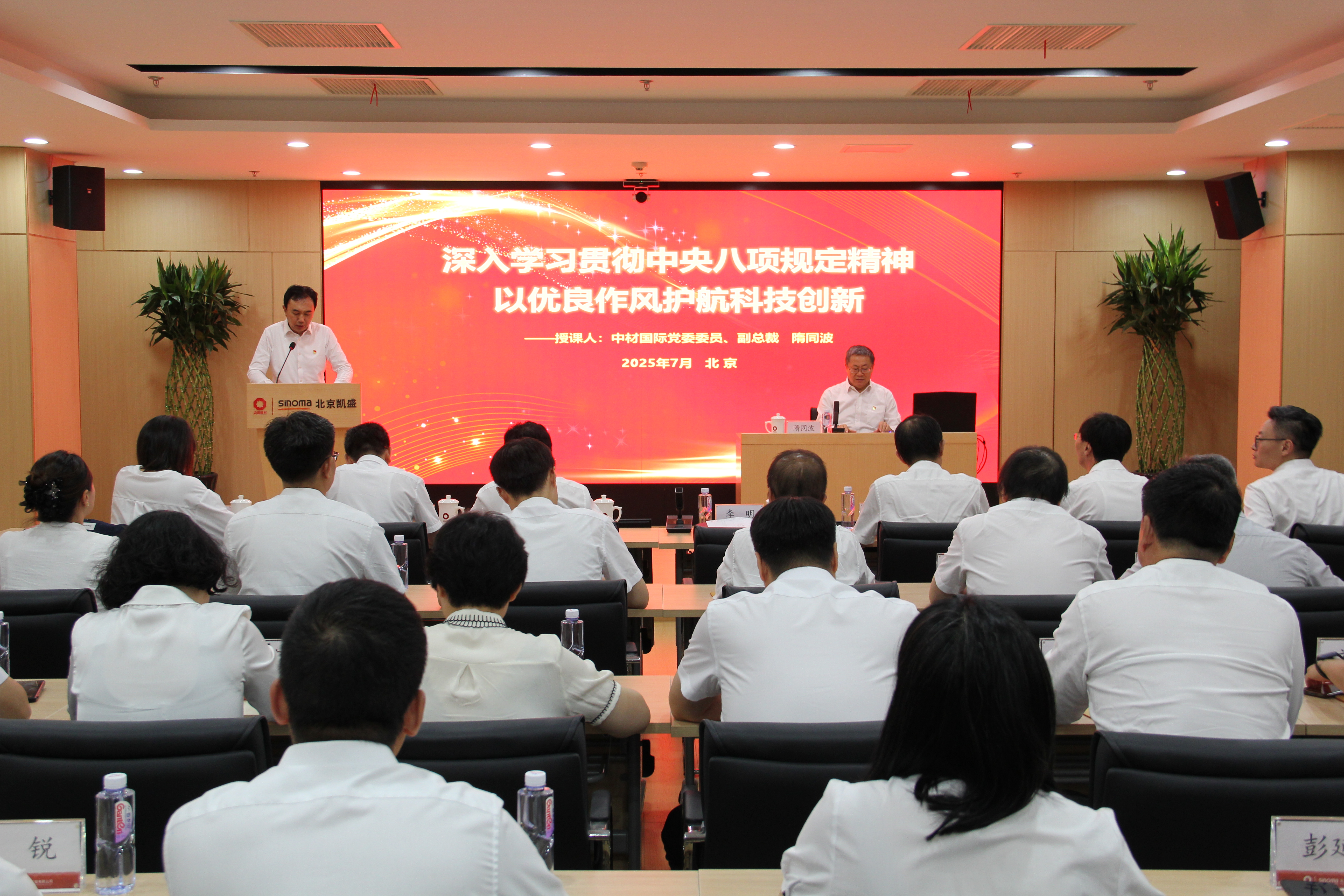 隋同波緊緊圍繞深入學(xué)習(xí)貫徹中央八項規(guī)定精神,從以史為鑒明方向,在百年黨史中汲取作風(fēng)建設(shè)智慧力量;以學(xué)鑄魂強根基,運用好中央八項規(guī)定精神的經(jīng)驗和成效;以案為鑒明得失,準(zhǔn)確把握當(dāng)前貫徹落實中央八項規(guī)定精神存在的突出問題;以行踐知抓落實,縱深推進全面從嚴管黨治企四個方面進行了深入解讀。他指出,要以進一步加強作風(fēng)建設(shè)為抓手,根植北京凱盛科技創(chuàng)新底蘊,大力弘揚科學(xué)家精神、工匠精神;要以貫徹落實中央八項規(guī)定精神為載體,鼓勵科技工作者踐行習(xí)總書記指示要求“把論文寫在祖國大地上,把成果用在實現(xiàn)現(xiàn)代化偉大事業(yè)中”,推動提升科技創(chuàng)新效能;要堅持“科技賦能一線”價值創(chuàng)造理念,秉承“科技+服務(wù)+產(chǎn)業(yè)”發(fā)展思路,充分利用中材國際內(nèi)部科研資源,不斷拓展新的國際化和多元化業(yè)務(wù)領(lǐng)域,進一步增強企業(yè)核心競爭力。他強調(diào),要緊密圍繞國家戰(zhàn)略需求、集團發(fā)展目標(biāo)和中材國際主責(zé)主業(yè),更大范圍、更高層次、更深程度融入國家、集團和中材國際創(chuàng)新體系,謀劃既適合北京凱盛長期發(fā)展戰(zhàn)略,又具有行業(yè)引領(lǐng)性的“十五五”規(guī)劃,贏得優(yōu)勢、贏得主動、贏得未來。