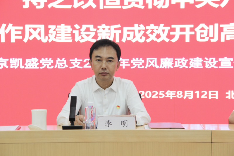 為深入學(xué)習(xí)貫徹習(xí)近平新時(shí)代中國(guó)特色社會(huì)主義思想,壓實(shí)管黨治黨政治責(zé)任,推進(jìn)全面從嚴(yán)治黨走深走實(shí),進(jìn)一步加強(qiáng)公司黨風(fēng)廉政建設(shè),結(jié)合正在開(kāi)展的深入貫徹中央八項(xiàng)規(guī)定精神學(xué)習(xí)教育,8月12日下午,北京凱盛黨總支以“持之以恒貫徹中央八項(xiàng)規(guī)定精神 以作風(fēng)建設(shè)新成效開(kāi)創(chuàng)高質(zhì)量發(fā)展新局面”為主題,開(kāi)展2025年黨風(fēng)廉政建設(shè)宣傳教育主題活動(dòng),并召開(kāi)深入貫徹中央八項(xiàng)規(guī)定精神學(xué)習(xí)教育警示教育大會(huì)。公司黨總支書(shū)記、董事李明出席活動(dòng)并講話,黨總支副書(shū)記、總經(jīng)理謝吉優(yōu)主持會(huì)議并開(kāi)展警示教育。