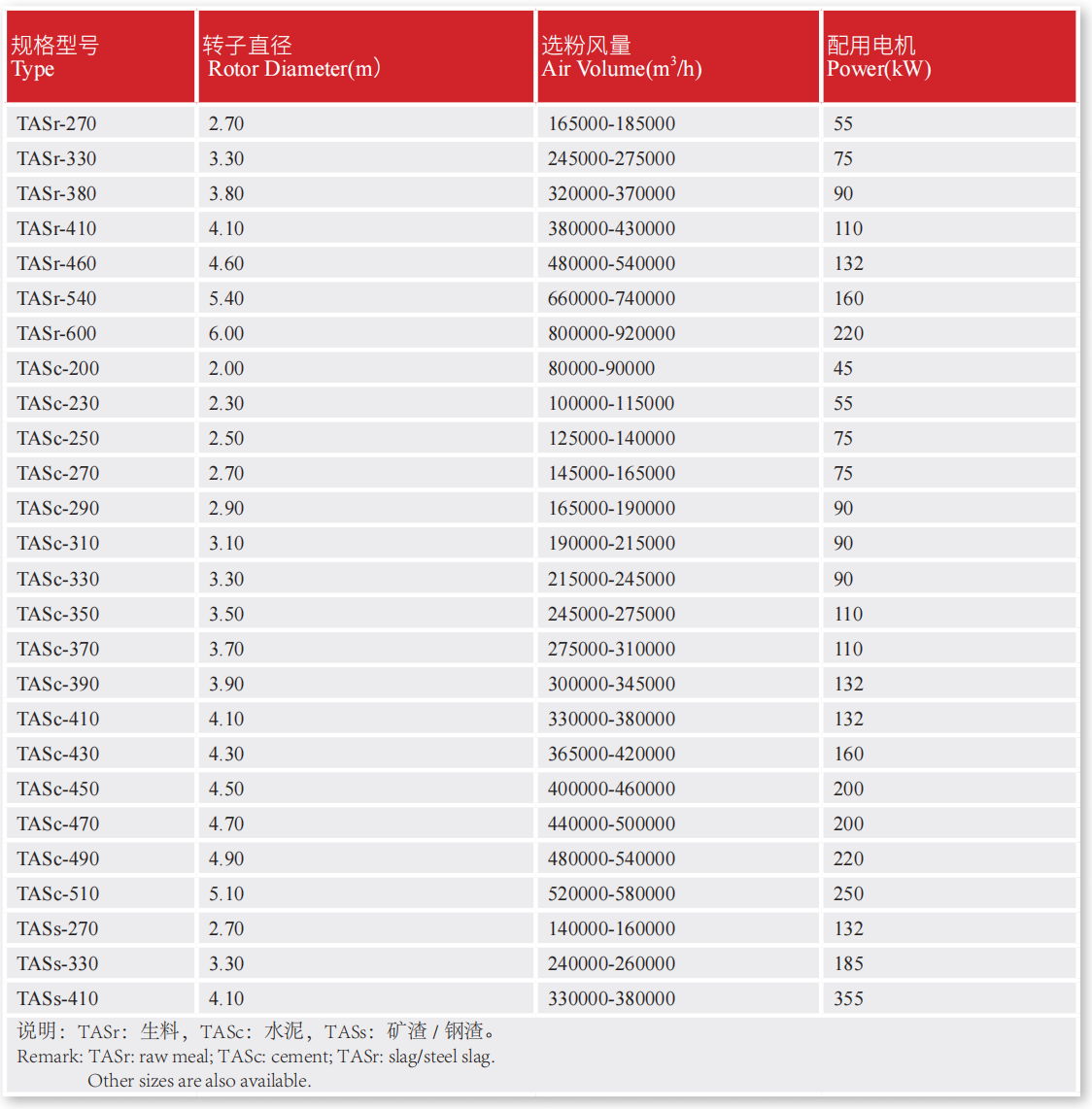 Комбинированный классификатор порошков TAS — это продукт, разработанный и продвигаемый нашей компанией в последние годы. Он используется совместно с роликовым прессом и может использоваться в недавно построенных или отремонтированных сырьевых мельницах, цементных мельницах, шлаковых (сталешлаковых) мельницах и других системах. Эта модель сочетает в себе высокоэффективный динамический классификатор порошков с V-образным статическим классификатором порошков. Он имеет компактную конструкцию и низкое рабочее сопротивление воздуха, что позволяет эффективно снизить энергопотребление системы.